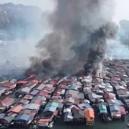 Video | Drone filmt hoe duizend paalwoningen in rook opgaan in Maleisië