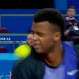 Video | Tennisser raakt bal verkeerd en blesseert zich aan zijn oog